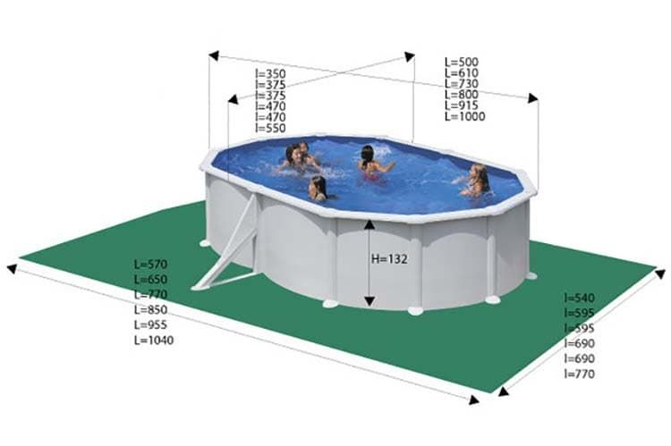 - Овальный бассейн со стальными стенами в белом цвете 500 x 300 х 132 см